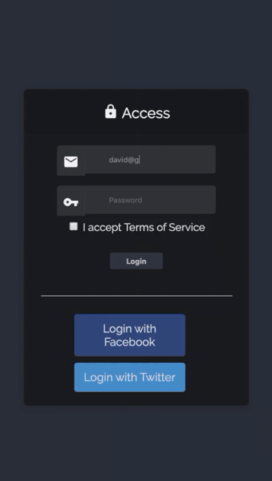 El QR le redirecciona directamente a una web alojada en un servidor creado dentro de la nodemcu y que está en local, es decir, en nuestra red privada (la de la cafetería). Si tenemos la suerte de que el usuario llega hasta aquí, sólo falta la parte fácil, que introduzca sus datos… Puede iniciar sesión con su correo y contraseña pero también, y esto es lo potencia principal, con Facebook y Twitter.